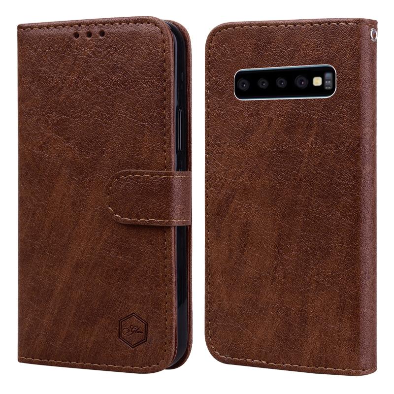 For Samsung Galaxy S10 Skin Feeling Oil Leather Texture PU + TPU Phone Case(Brown)