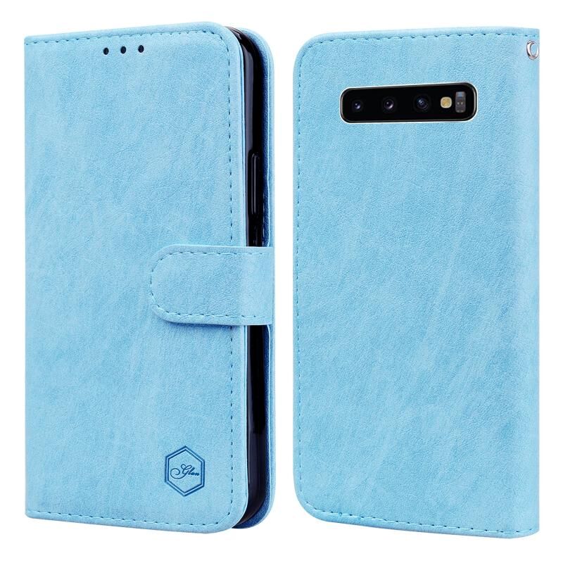 Θήκη κινητού τηλεφώνου Samsung Galaxy S10+ με υφή δέρματος λάδι και υλικό PU + TPU (Ανοιχτό μπλε)