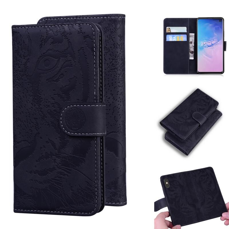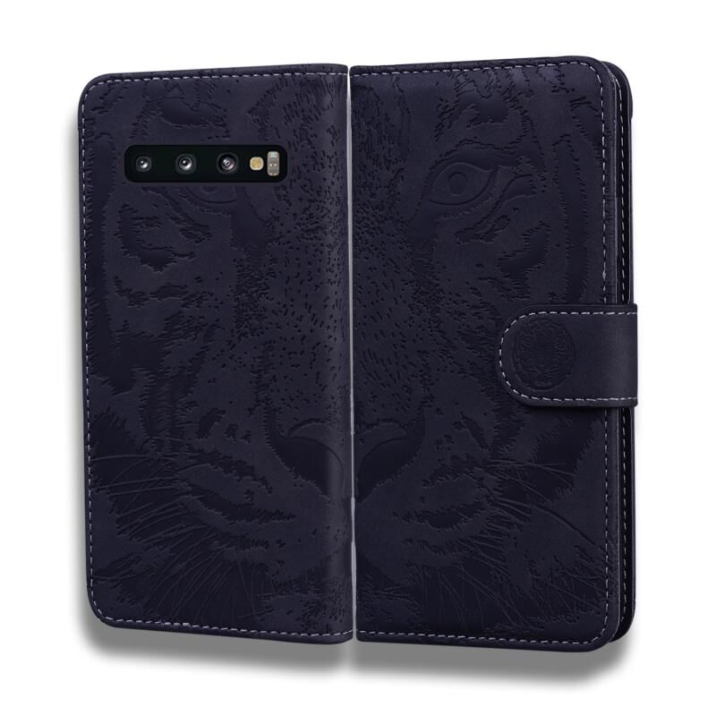 Θήκη δέρματος οριζόντιας αναδίπλωσης με ανάγλυφο μοτίβο τίγρης για Samsung Galaxy S10 με βάση & υποδοχές καρτών & πορτοφόλι (Καφέ)