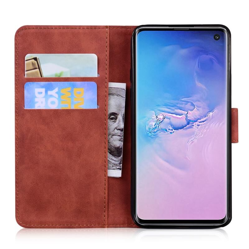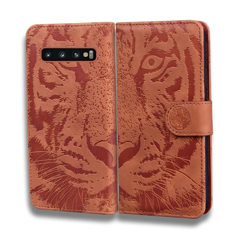 Θήκη δέρματος οριζόντιας αναδίπλωσης με ανάγλυφο μοτίβο τίγρης για Samsung Galaxy S10 με βάση & υποδοχές καρτών & πορτοφόλι (Καφέ)