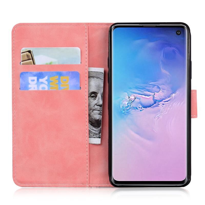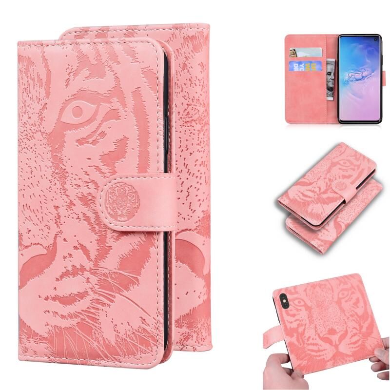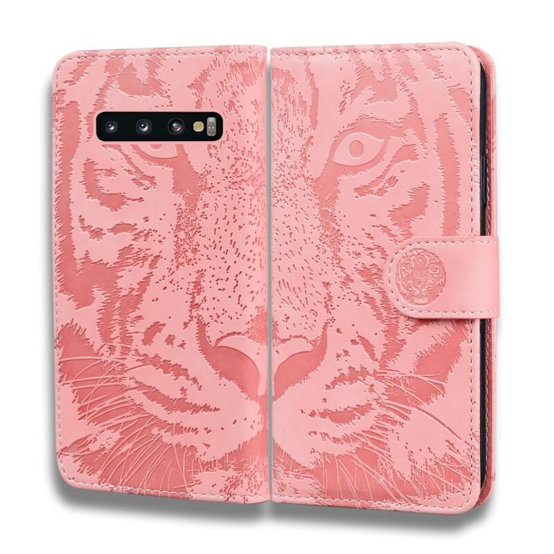 Θήκη δέρματος οριζόντιας αναδίπλωσης με ανάγλυφο μοτίβο τίγρης για Samsung Galaxy S10 με βάση & υποδοχές καρτών & πορτοφόλι (Καφέ)