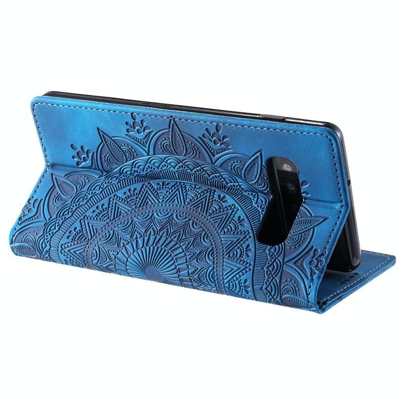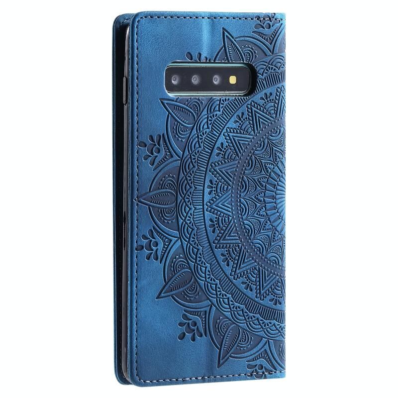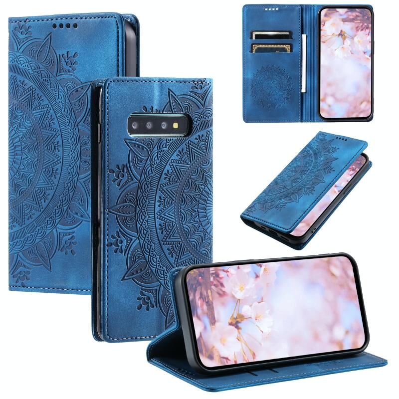 Για Samsung Galaxy S10+ Totem ανάγλυφη μαγνητική δερμάτινη θήκη τηλεφώνου (Μπλε)