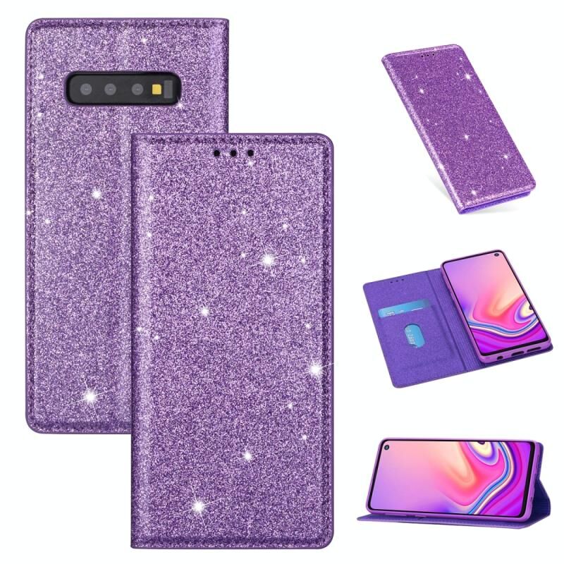 Για Samsung Galaxy S10 Ultrathin Glitter μαγνητική οριζόντια Flip δερμάτινη θήκη με θήκη & υποδοχές για κάρτες (μωβ)