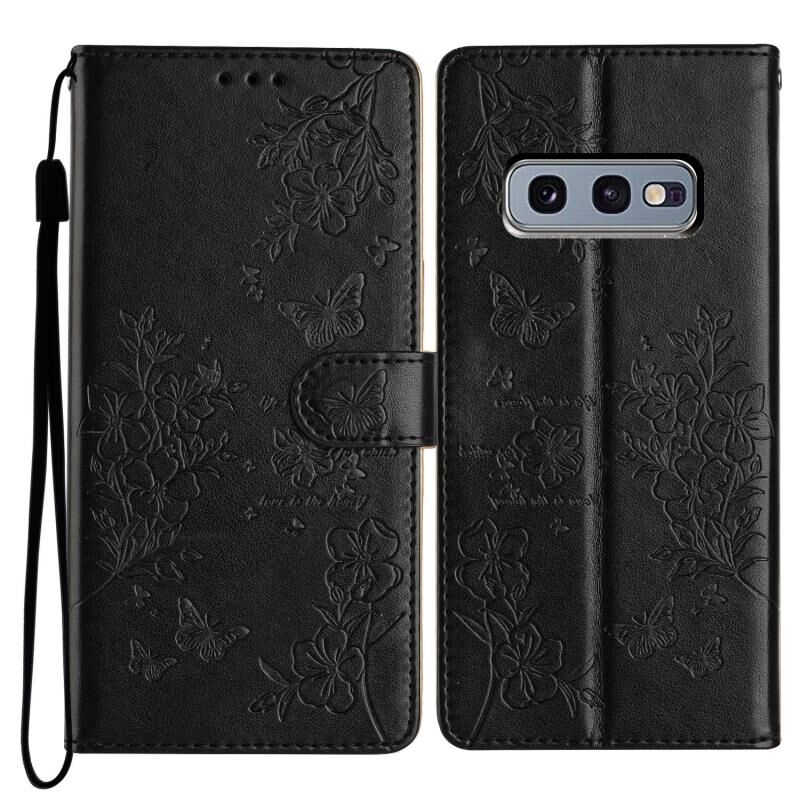 Θήκη τηλεφώνου δερμάτινη για Samsung Galaxy S10e, Πεταλούδες και Λουλούδια (Χρυσό)