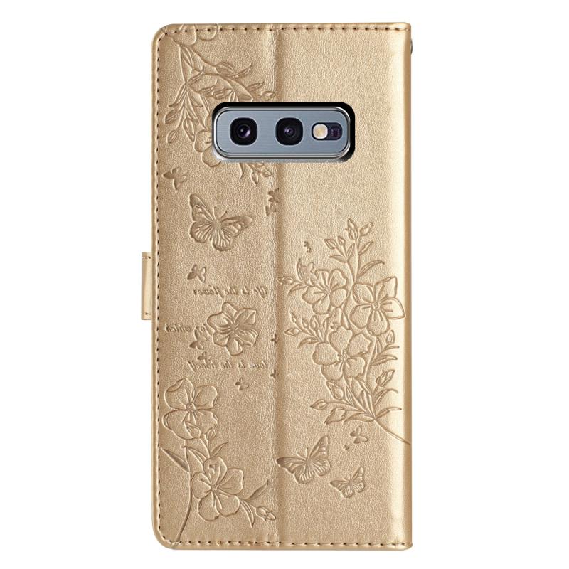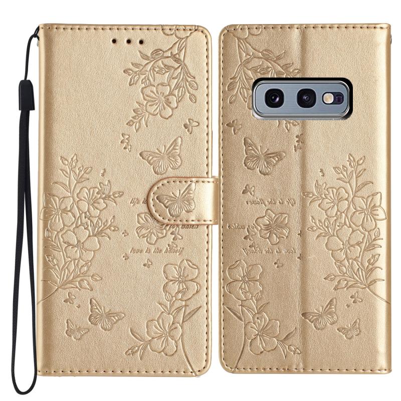 For Samsung Galaxy S10e Butterflies and Flowers Leather Phone Case(Gold)