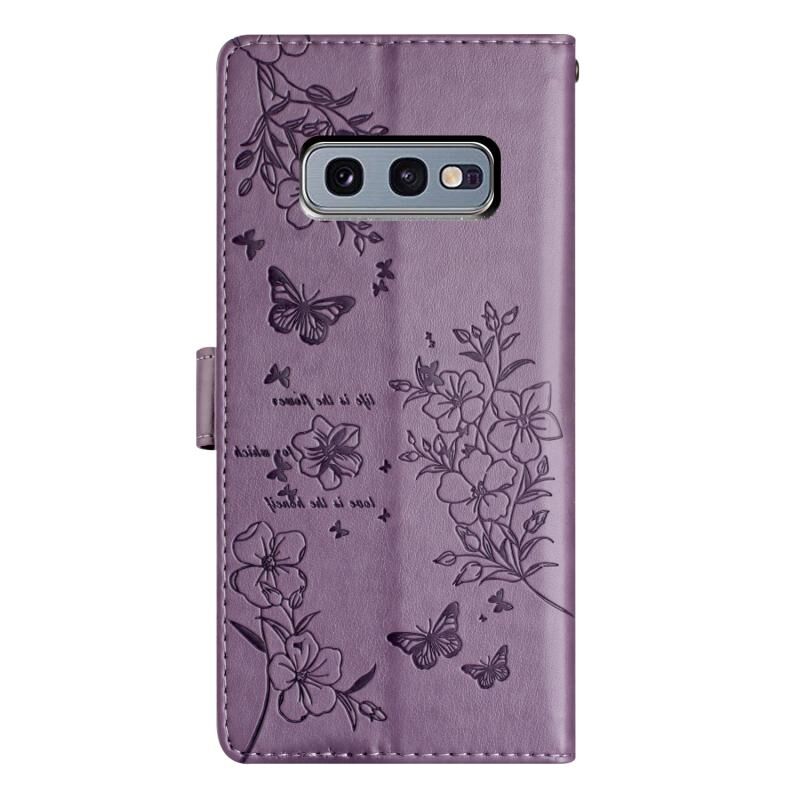 Θήκη τηλεφώνου δερμάτινη για Samsung Galaxy S10e, Πεταλούδες και Λουλούδια (Χρυσό)