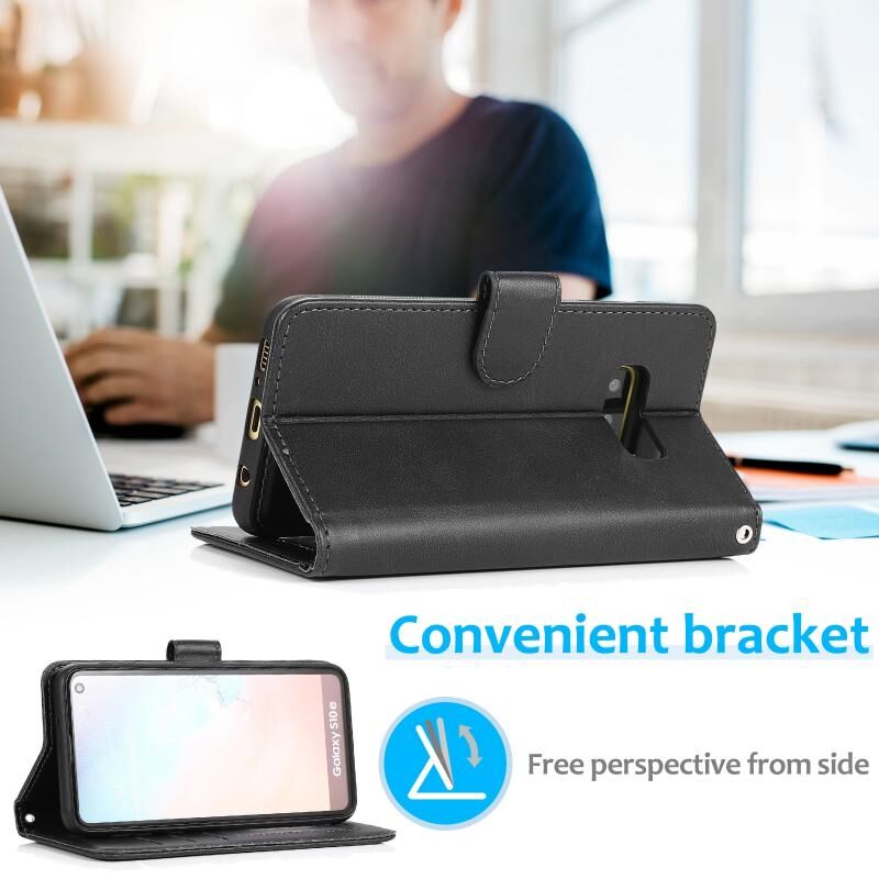 Για Samsung Galaxy S10e Calf Texture 2 σε 1 Αποσπώμενο μαγνητικό πίσω κάλυμμα Οριζόντια Flip δερμάτινη θήκη με θήκη & υποδοχές για κάρτες & πορτοφόλι & κορνίζα φωτογραφιών (Μαύρο)
