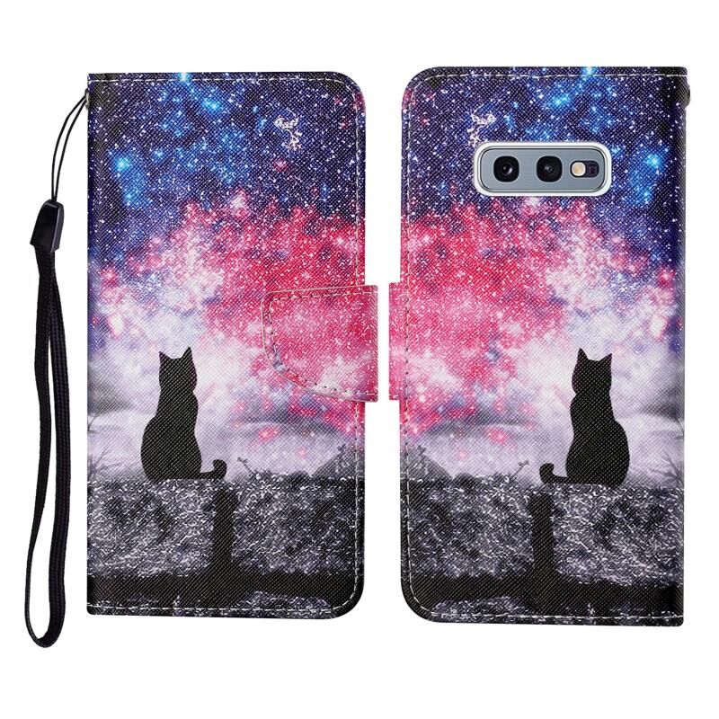 Θήκη δέρματος οριζόντιας αναδίπλωσης με σχέδιο πολύχρωμης ζωγραφικής για Samsung Galaxy S10e με βάση στήριξης & υποδοχές καρτών & πορτοφόλι & κορδόνι (Κόκκινο)
