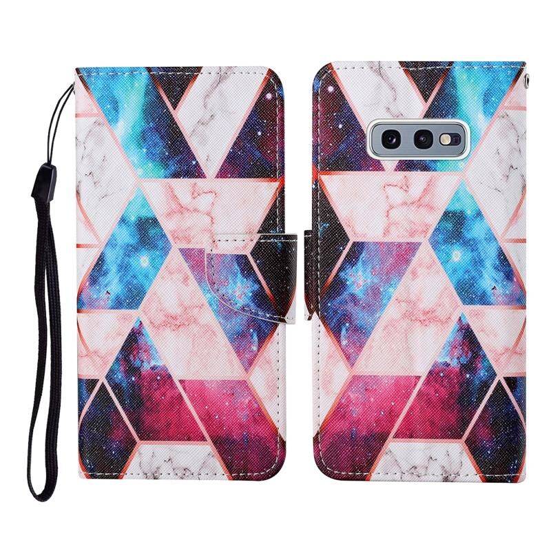 Θήκη δέρματος οριζόντιας αναδίπλωσης με σχέδιο πολύχρωμης ζωγραφικής για Samsung Galaxy S10e με βάση στήριξης & υποδοχές καρτών & πορτοφόλι & κορδόνι (Κόκκινο)