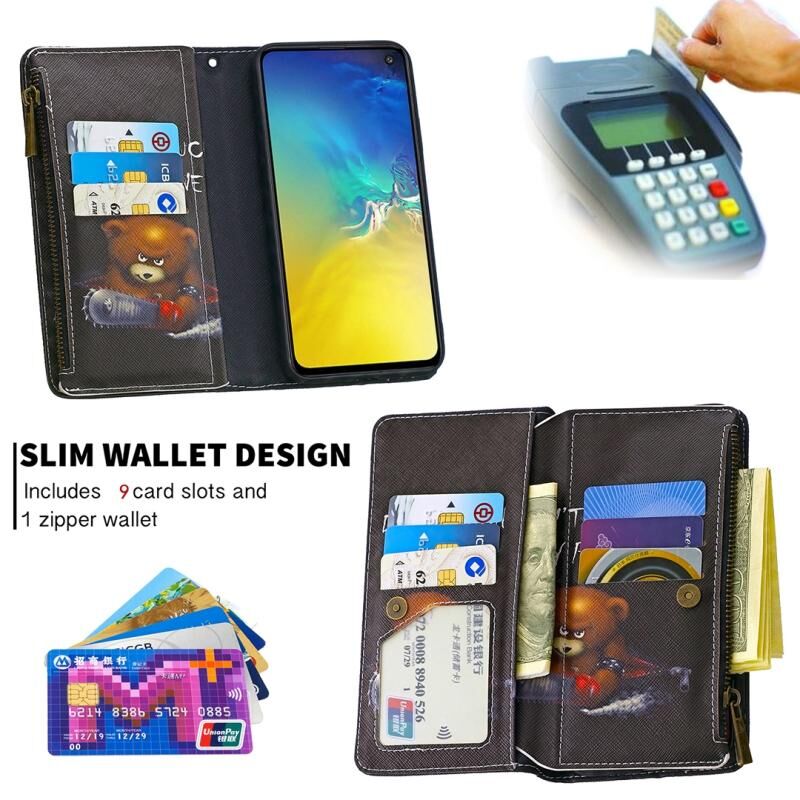Θήκη Samsung Galaxy S10e Δερμάτινη Οριζόντια με Φερμουάρ, Σχέδιο Ζωγραφικής, με Θήκη & Θήκες Καρτών & Πορτοφόλι (Κόκκινο)