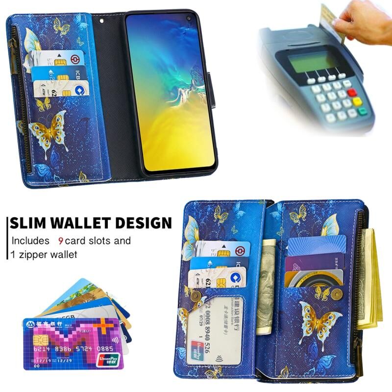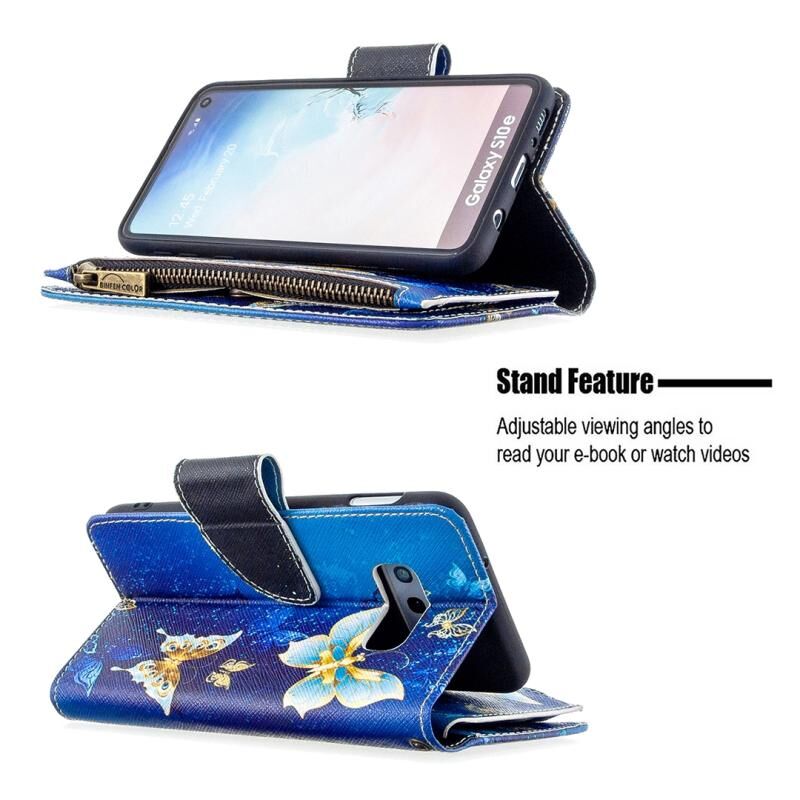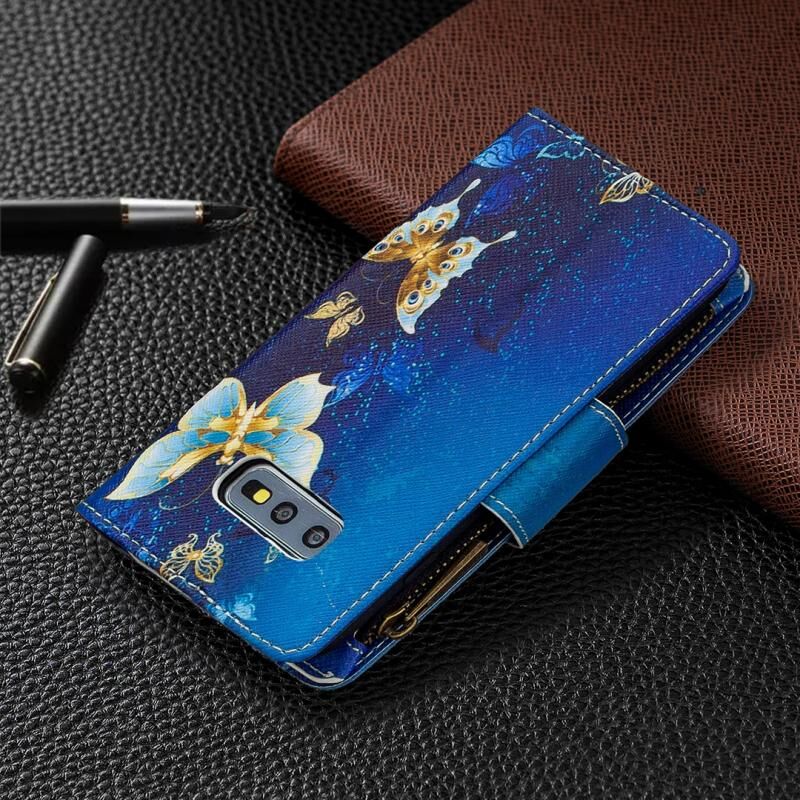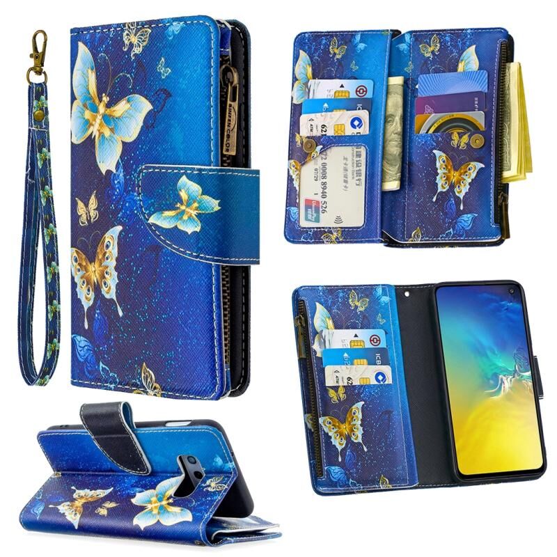 Θήκη Samsung Galaxy S10e Δερμάτινη Οριζόντια με Φερμουάρ, Σχέδιο Ζωγραφικής σε Χρώματα, με Θήκη & Θήκες Καρτών & Πορτοφόλι (Χρυσή Πεταλούδα)