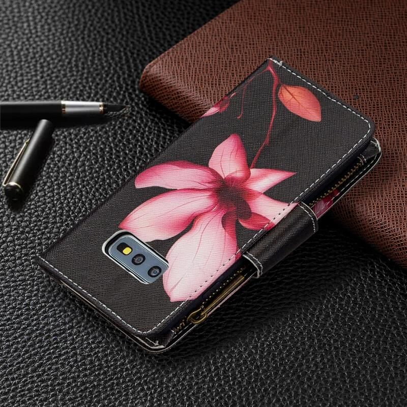 Θήκη Samsung Galaxy S10e Δερμάτινη Οριζόντια με Φερμουάρ, Σχέδιο Ζωγραφικής σε Χρώματα, με Θήκη & Θήκες Καρτών & Πορτοφόλι (Κόκκινο)