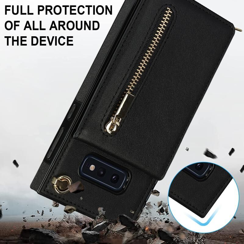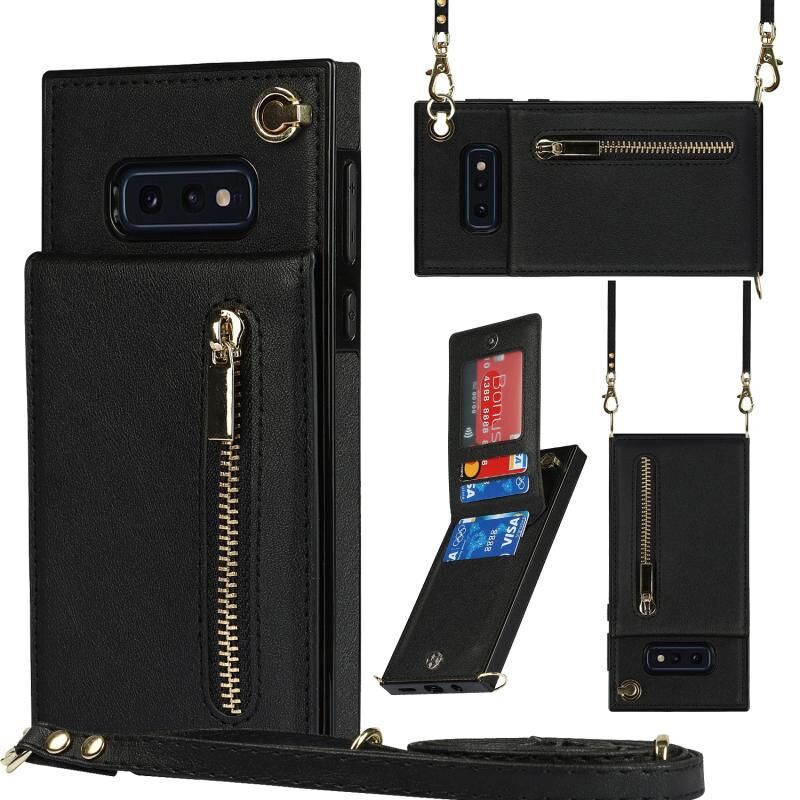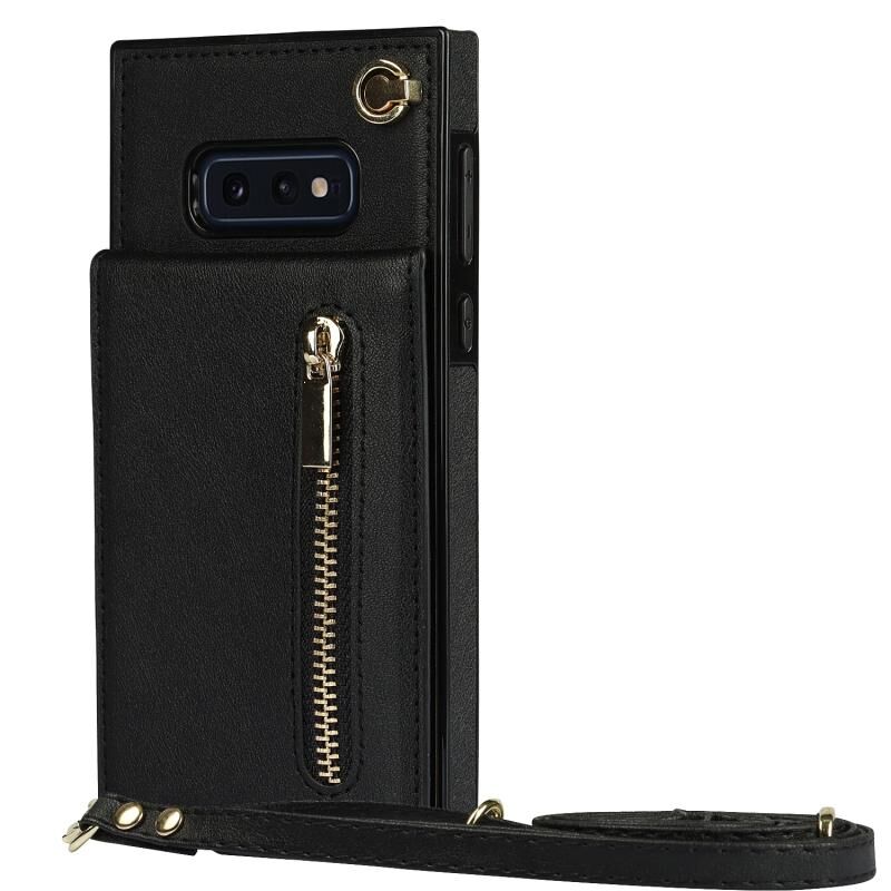 Για Samsung Galaxy S10e Cross-body φερμουάρ τετράγωνο TPU + PU πίσω κάλυμμα θήκη με θήκη & υποδοχές για κάρτες & πορτοφόλι & λουράκι (Μαύρο)