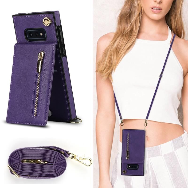 Για Samsung Galaxy S10e Cross-body φερμουάρ τετράγωνο TPU + PU πίσω κάλυμμα υπόθεση με θήκη & υποδοχές για κάρτες & πορτοφόλι & λουράκι (μωβ)
