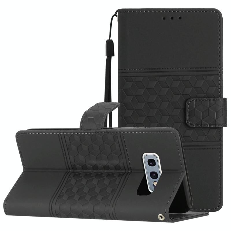 Για Samsung Galaxy S10E Diamond ανάγλυφο δέρμα αίσθηση δέρμα τηλέφωνο υπόθεση με κορδόνι (Μαύρο)