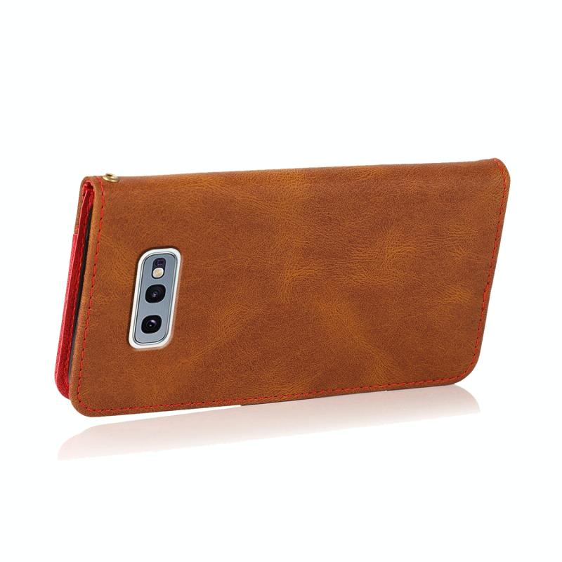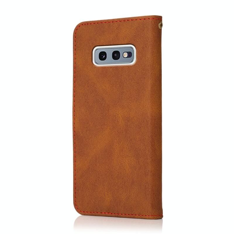 Θήκη τηλεφώνου δερμάτινη με διπλή ραφή για Samsung Galaxy S10e (Καφέ-κόκκινο)
