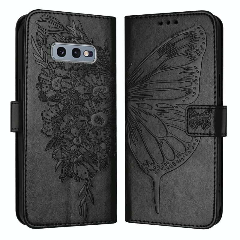 Για το Samsung Galaxy S10e ανάγλυφη πεταλούδα δερμάτινη θήκη τηλεφώνου (Μαύρο)