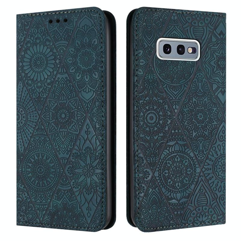 Θήκη τηλεφώνου Samsung Galaxy S10e από δέρμα με έθνικ ανάγλυφο και απορρόφηση (Μπλε)