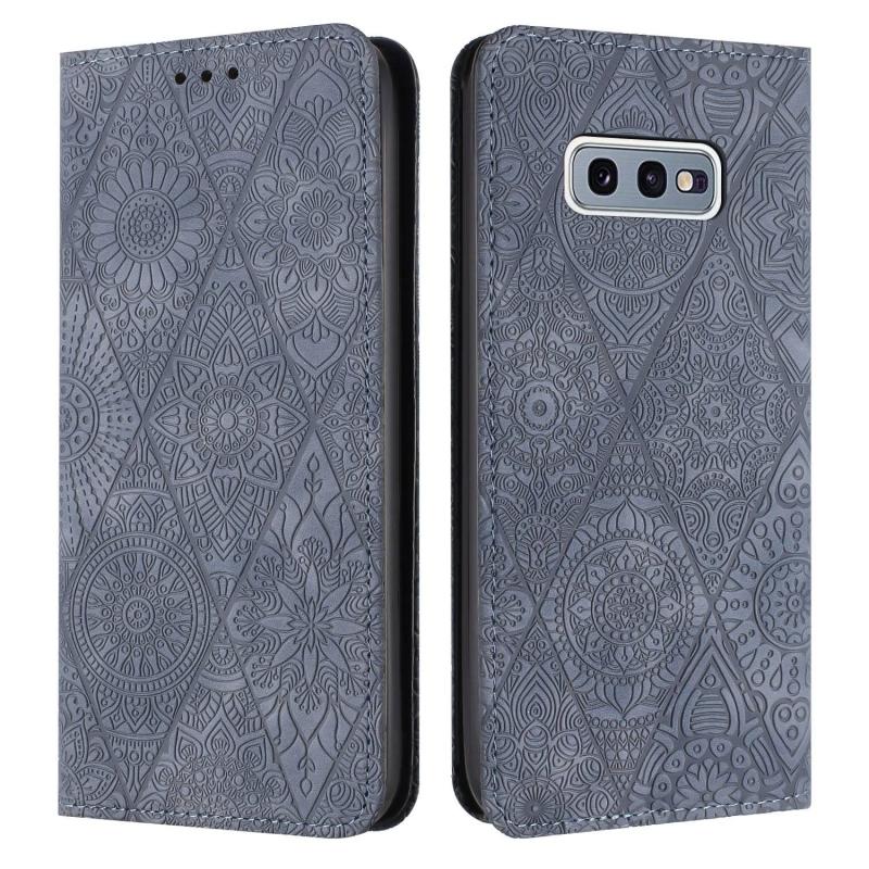 Θήκη τηλεφώνου Samsung Galaxy S10e από δέρμα με έθνικ ανάγλυφο και απορρόφηση (Γκρι)