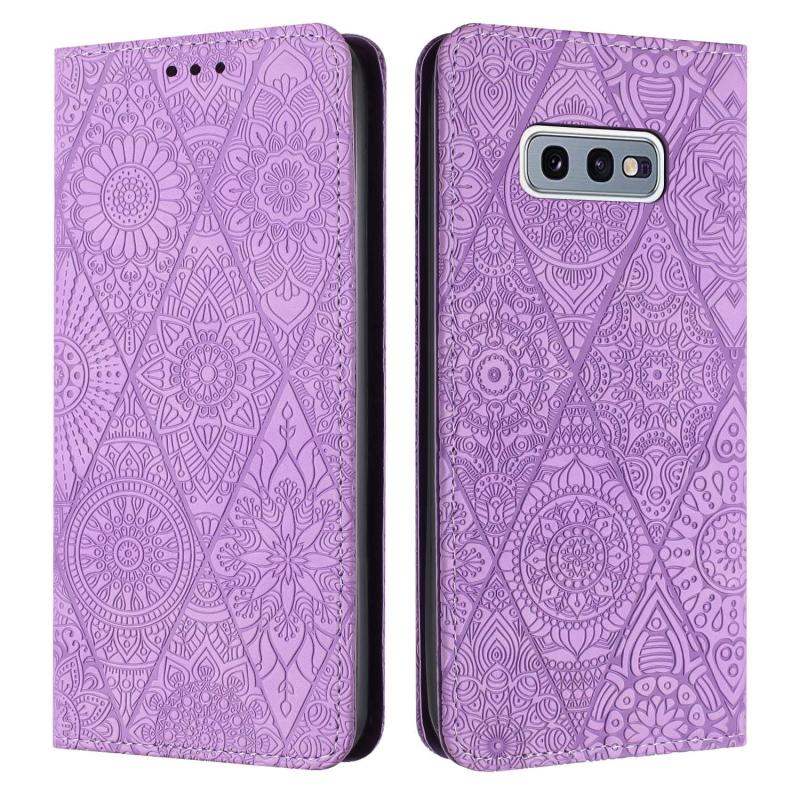 Θήκη τηλεφώνου Samsung Galaxy S10e από δέρμα με έθνικ ανάγλυφο και απορρόφηση (Μωβ)