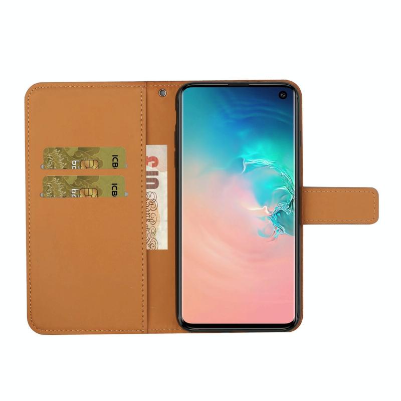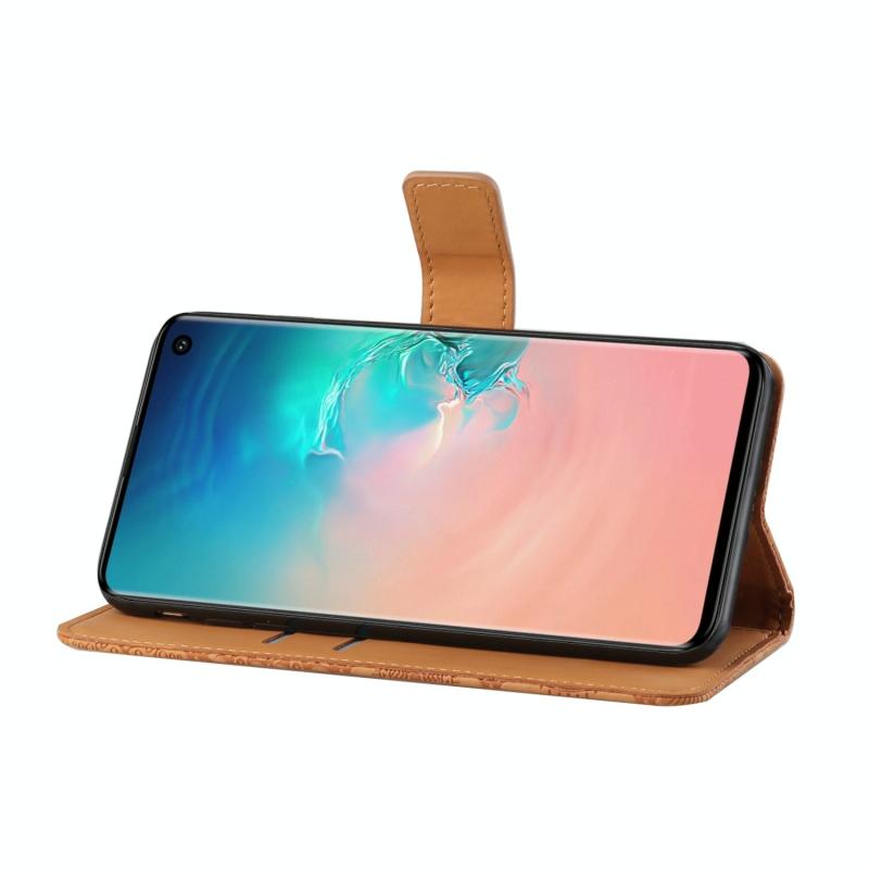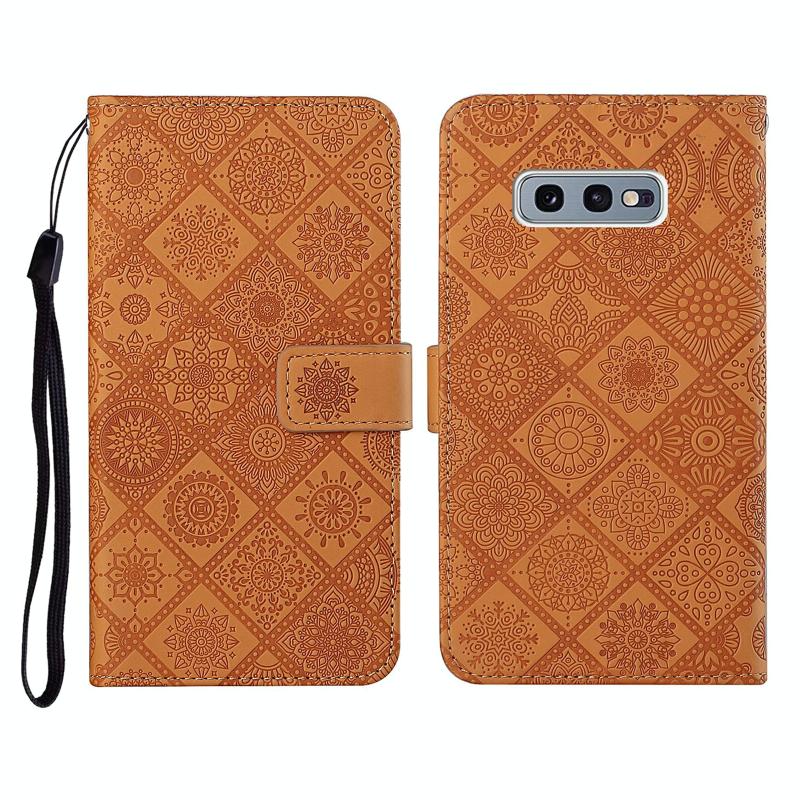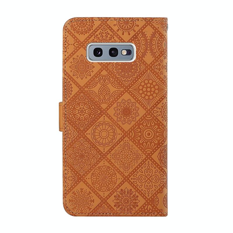 Θήκη Samsung Galaxy S10e, Δερμάτινη οριζόντια με σχέδια εθνοτικού στυλ και ανάγλυφο, με βάση, θήκες καρτών, πορτοφόλι και κορδόνι (Λευκό)