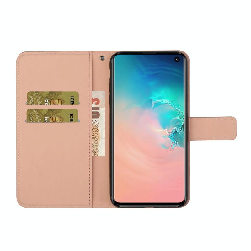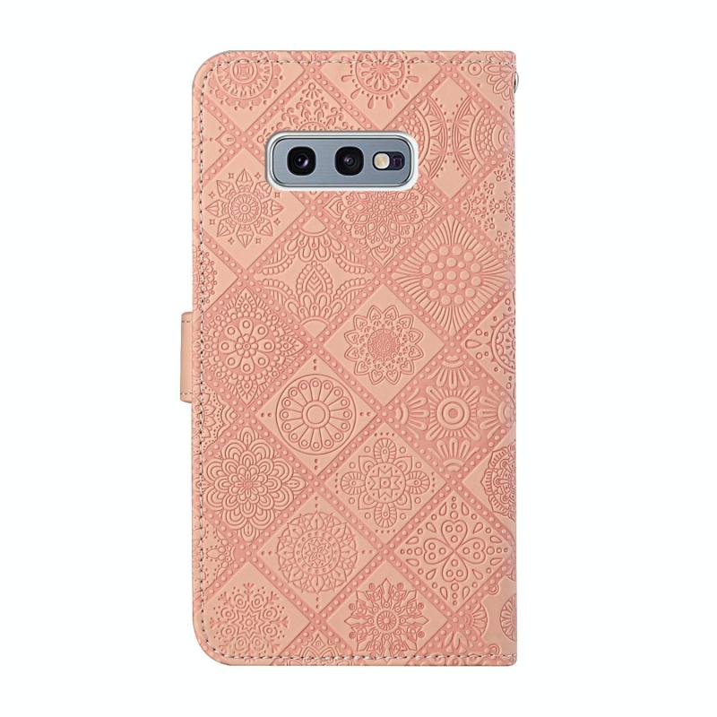 Θήκη Samsung Galaxy S10e, Δερμάτινη οριζόντια με σχέδια εθνοτικού στυλ και ανάγλυφο, με βάση, θήκες καρτών, πορτοφόλι και κορδόνι (Λευκό)