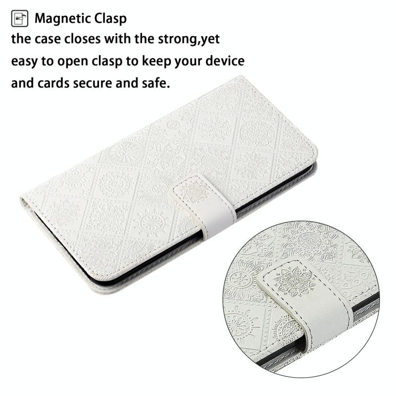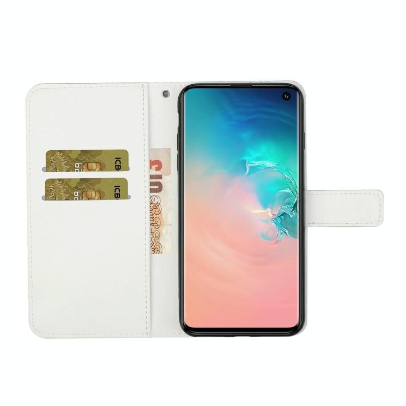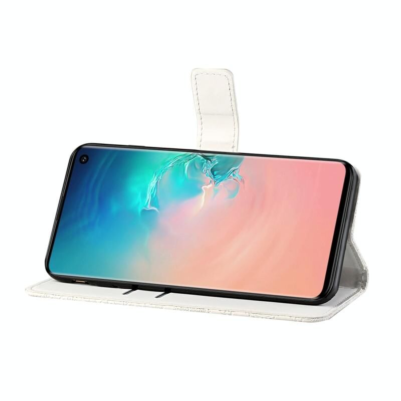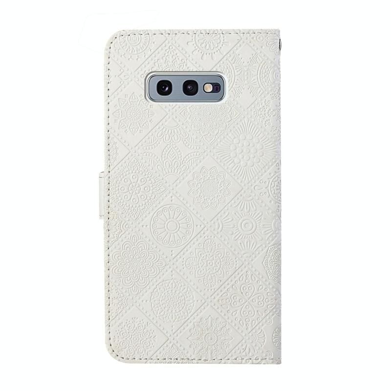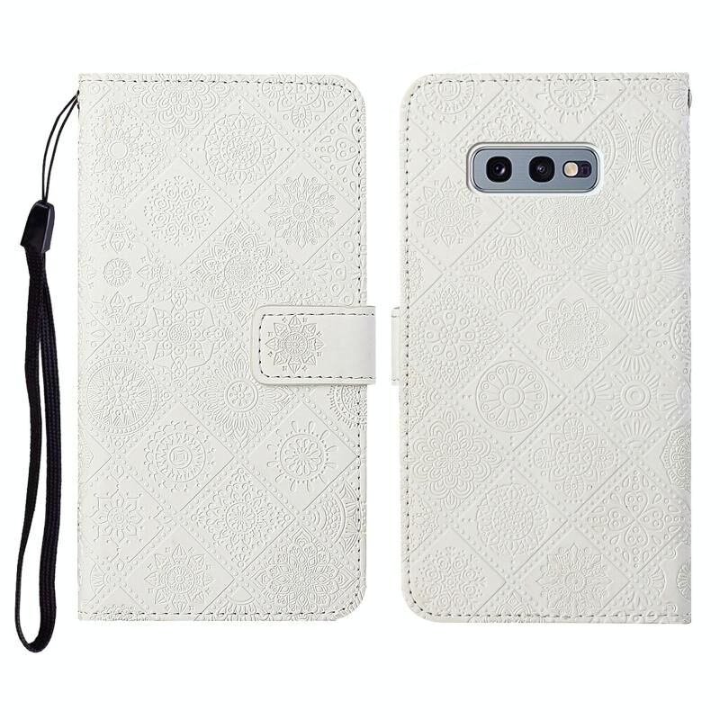 Θήκη Samsung Galaxy S10e, Δερμάτινη οριζόντια με σχέδια εθνοτικού στυλ και ανάγλυφο, με βάση, θήκες καρτών, πορτοφόλι και κορδόνι (Λευκό)
