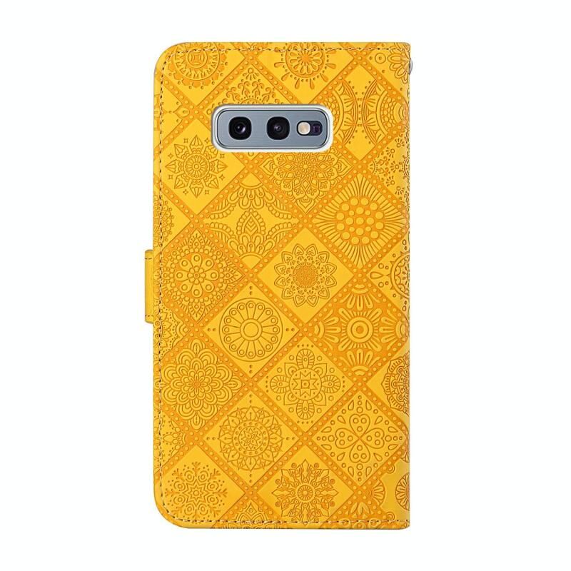 Θήκη Samsung Galaxy S10e, Δερμάτινη οριζόντια με σχέδια εθνοτικού στυλ και ανάγλυφο, με βάση, θήκες καρτών, πορτοφόλι και κορδόνι (Λευκό)