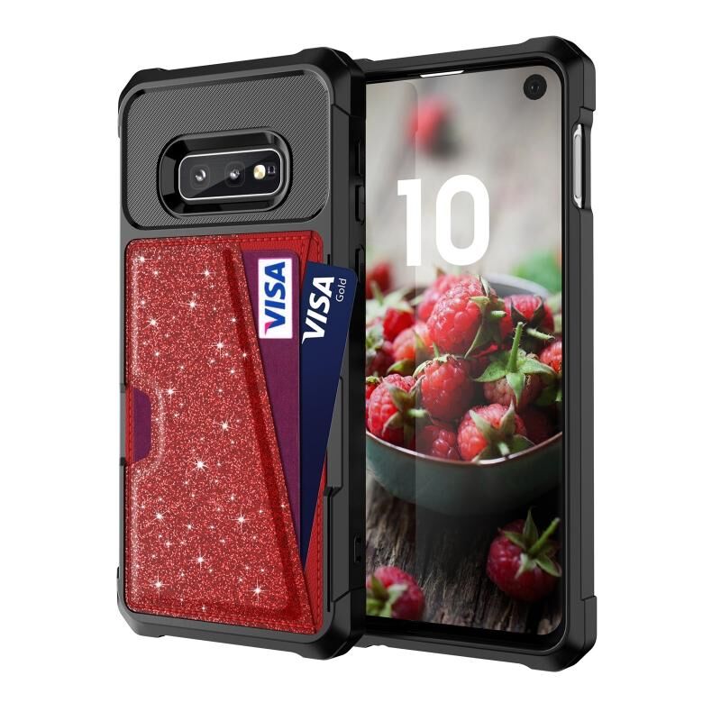 Για Samsung Galaxy S10e Glitter μαγνητική τσάντα κάρτα τηλέφωνο υπόθεση (κόκκινο)