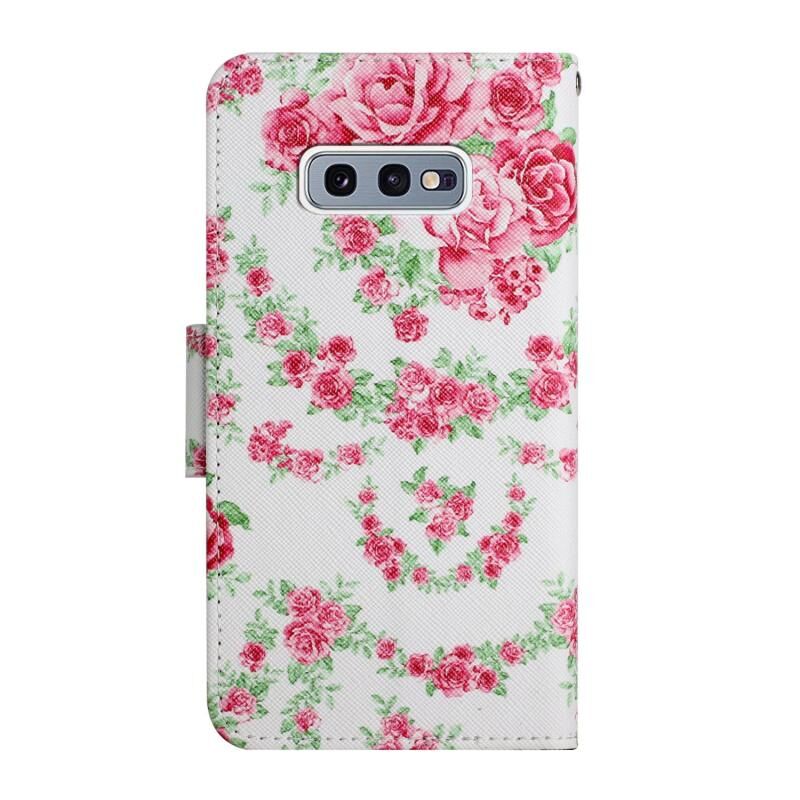Θήκη δέρματος οριζόντιας αναδίπλωσης με σχέδιο ζωγραφικής για Samsung Galaxy S10e με βάση & υποδοχή κάρτας & πορτοφόλι (Τριαντάφυλλο)