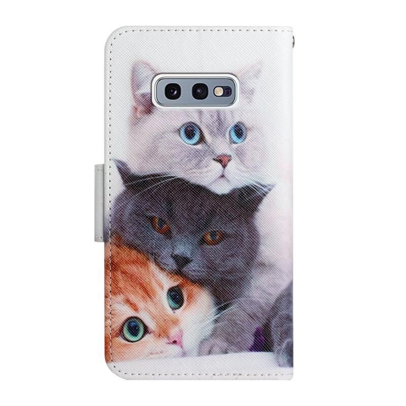 Θήκη δέρματος οριζόντιας αναδίπλωσης με σχέδιο (τρία γατάκια) για Samsung Galaxy S10e, με βάση στήριξης & υποδοχή κάρτας & πορτοφόλι.