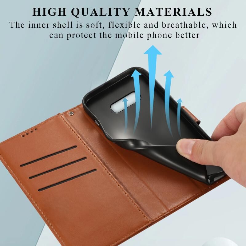 Θήκη τηλεφώνου για Samsung Galaxy S10e από γνήσιο δέρμα PU με ανάγλυφη υφή και λεπτομέρειες γραμμής (Καφέ)