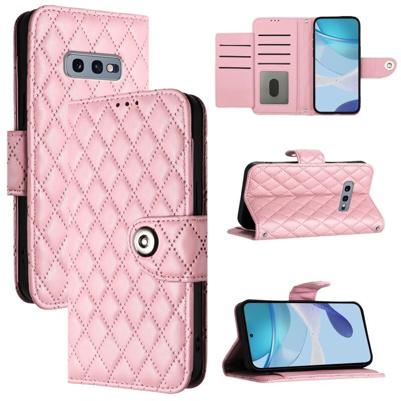 Για το Samsung Galaxy S10e Rhombic Texture Flip δερμάτινη θήκη τηλεφώνου με κορδόνι (ροζ)