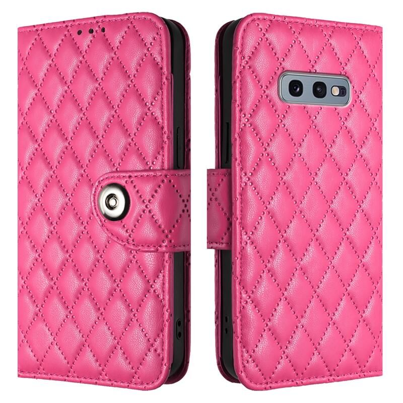 Για Samsung Galaxy S10e Rhombic Texture Flip δερμάτινη θήκη τηλεφώνου με κορδόνι (Rose Red)