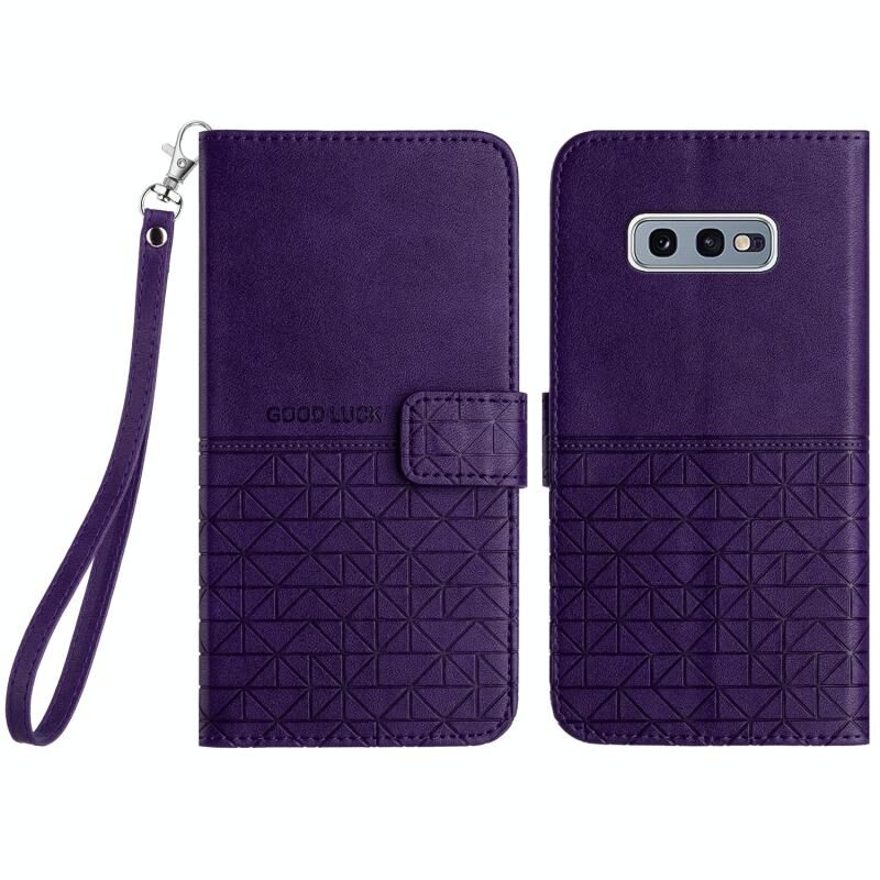 For Samsung Galaxy S10e Rhombic Texture Leather Phone Case with Lanyard(Purple)