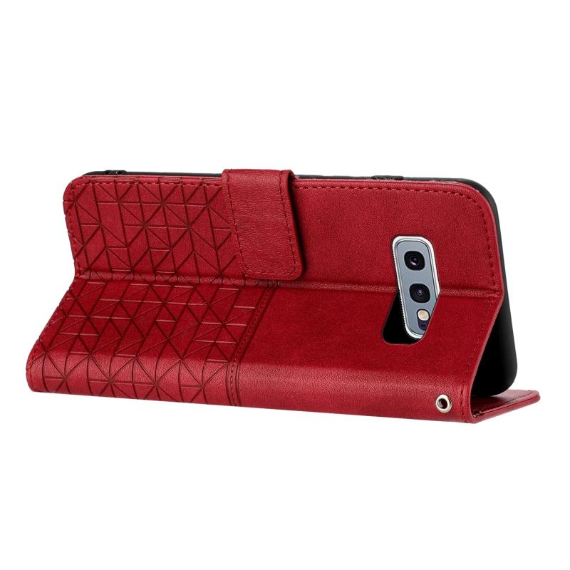 For Samsung Galaxy S10e Rhombic Texture Leather Phone Case with Lanyard(Red)