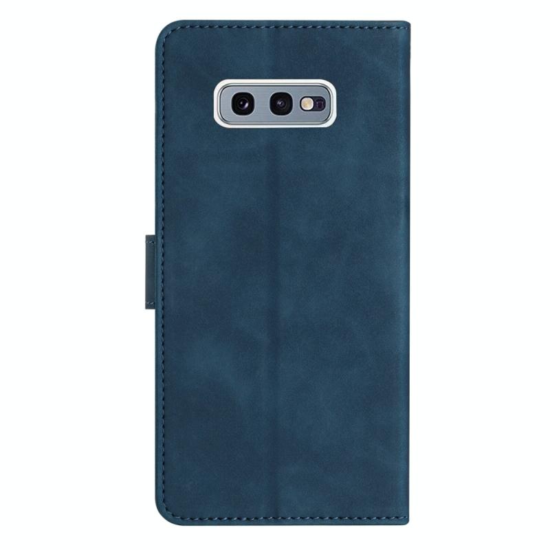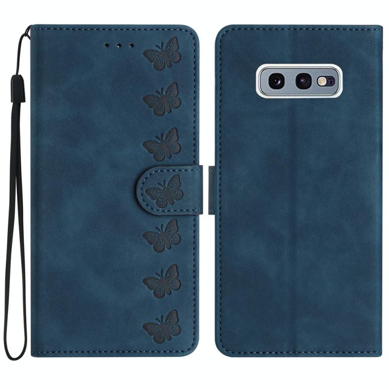 Θήκη τηλεφώνου Samsung Galaxy S10e Seven Butterflies, δερμάτινη με ανάγλυφο σχέδιο (Μπλε)