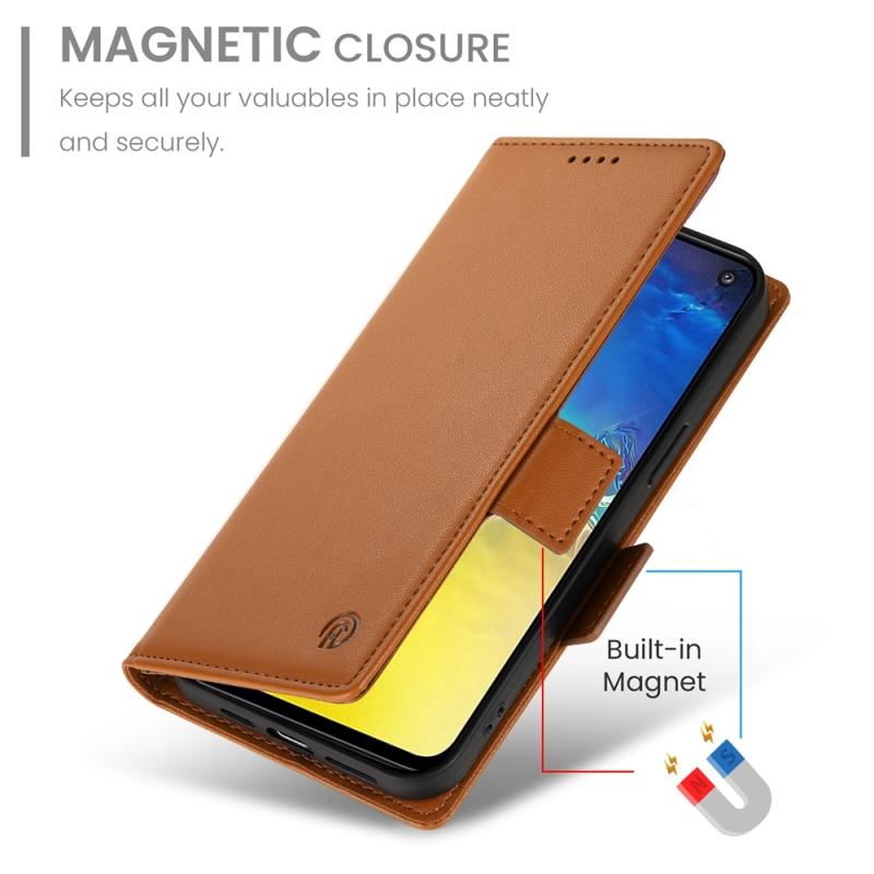 For Samsung Galaxy S10e Side Buckle Magnetic Frosted Leather Phone Case(Brown)