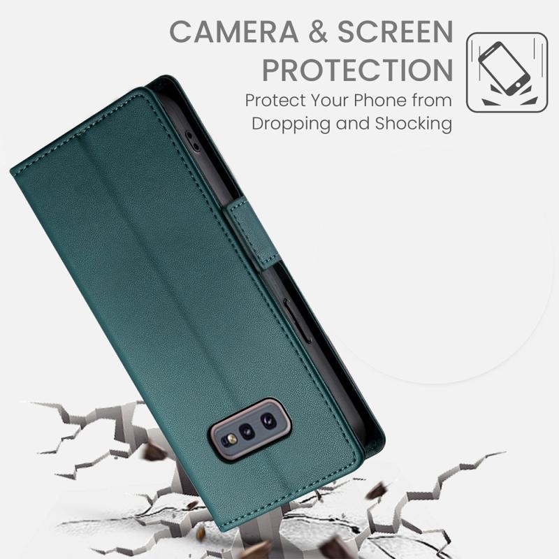 For Samsung Galaxy S10e Side Buckle Magnetic Frosted Leather Phone Case(Dark Green)