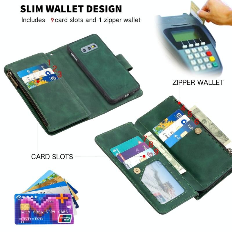 Για Samsung Galaxy S10e Skin Feel Αποσπώμενο μαγνητικό φερμουάρ Οριζόντια Flip PU δερμάτινη θήκη με υποδοχές για πολλαπλές κάρτες & υποδοχή & πορτοφόλι & κορνίζα & κορδόνι φωτογραφιών (πράσινο)
