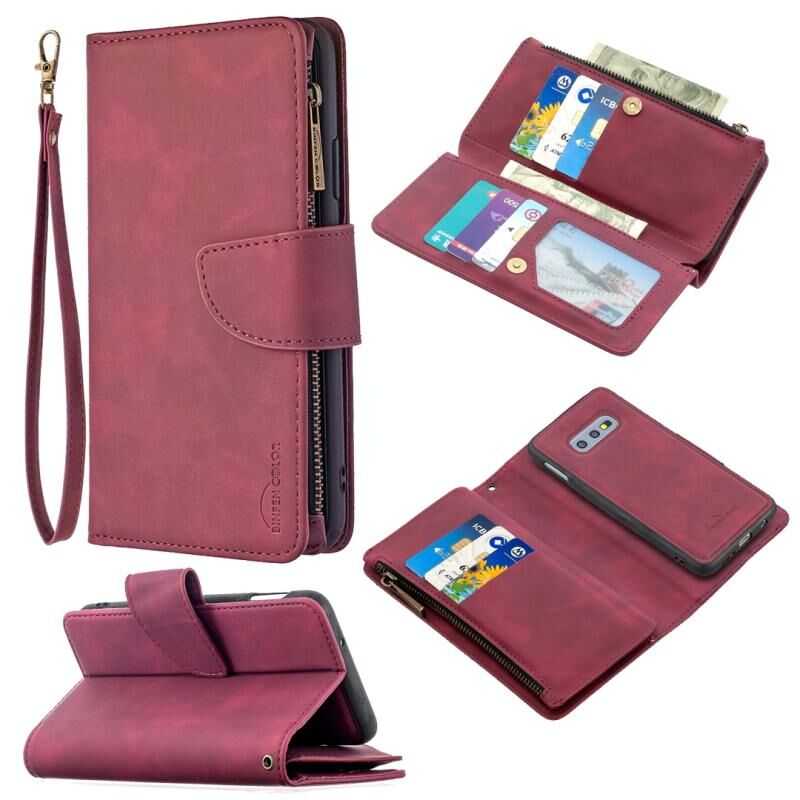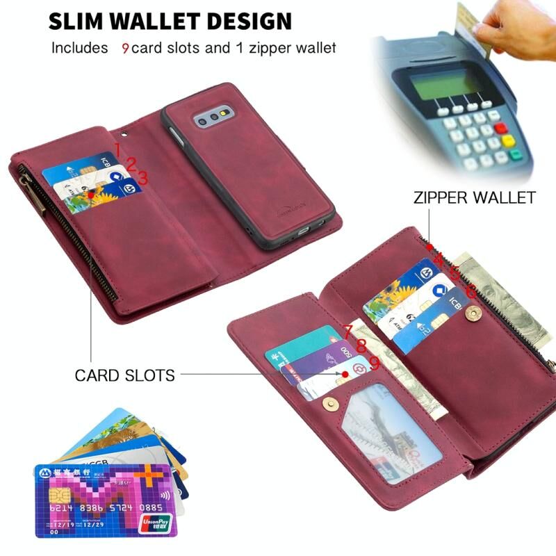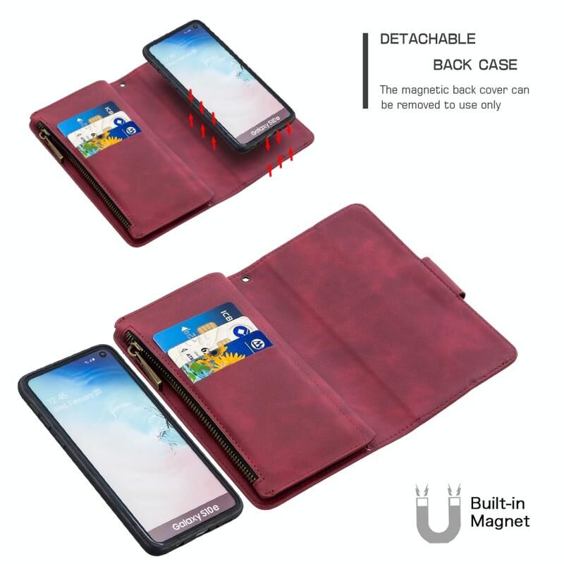 Για Samsung Galaxy S10e Skin Feel Αποσπώμενο μαγνητικό φερμουάρ Οριζόντια Flip PU δερμάτινη θήκη με υποδοχές για πολλαπλές κάρτες & υποδοχή & πορτοφόλι & κορνίζα & κορδόνι φωτογραφιών (κόκκινο)