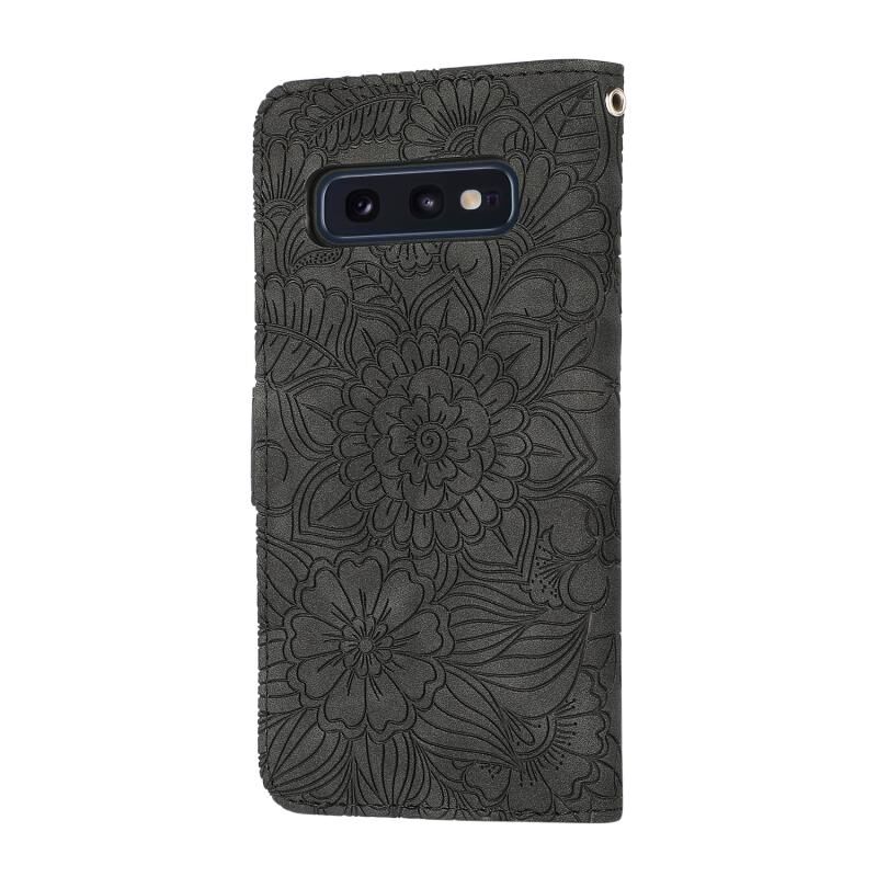 Για Samsung Galaxy S10e δέρμα αίσθηση ανάγλυφο ηλιοτρόπιο οριζόντια Flip δερμάτινη θήκη με υποδοχές για κάρτες & υποδοχές & πορτοφόλι & κορδόνι (μαύρο)