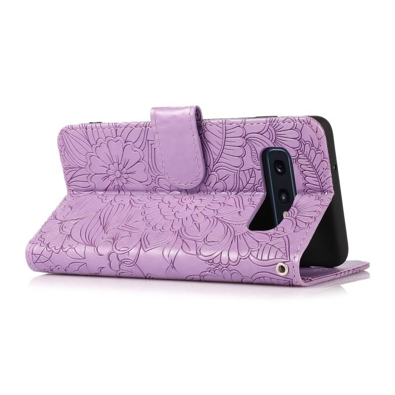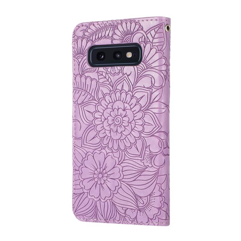 Για Samsung Galaxy S10e δέρμα αίσθηση ανάγλυφο ηλιοτρόπιο οριζόντια Flip δερμάτινη θήκη με κάτοχο & υποδοχές για κάρτες & πορτοφόλι & κορδόνι (μωβ)