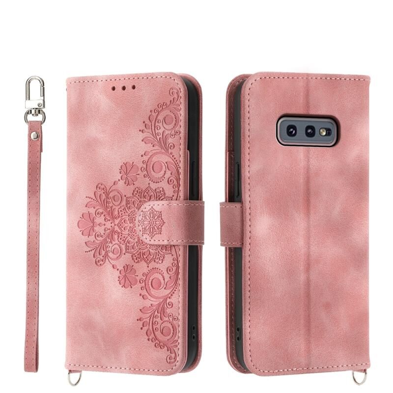 Για Samsung Galaxy S10e Skin-feel λουλούδια ανάγλυφο πορτοφόλι δερμάτινη θήκη τηλεφώνου (ροζ)