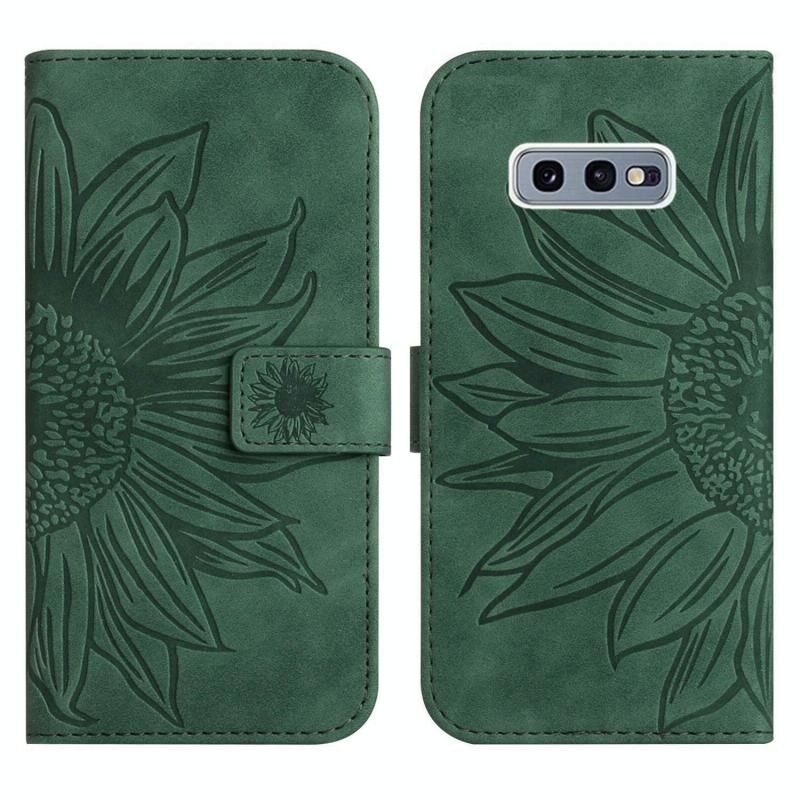 Για το Samsung Galaxy S10E δέρμα αίσθηση Sun Flower μοτίβο Flip δέρμα τηλέφωνο υπόθεση με κορδόνι (πράσινο)