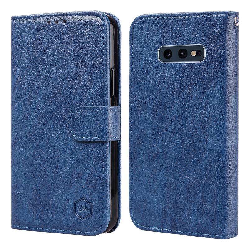 For Samsung Galaxy S10E Skin Feeling Oil Leather Texture PU + TPU Phone Case(Dark Blue)