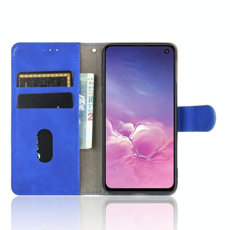 Για Samsung Galaxy S10e Αμιγές χρώμα δέρμα αίσθηση μαγνητική πόρπη οριζόντια Flip μοσχάρι υφή PU δέρμα υπόθεση με κάτοχο & υποδοχές για κάρτες & πορτοφόλι (μπλε)