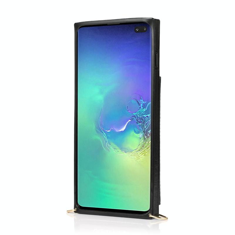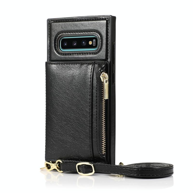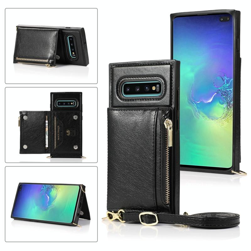 For Samsung Galaxy S10e Square Zipper Wallet Bag TPU+PU Back Cover Case with Holder & Card Slots & Wallet & Cross-body Strap(Black)