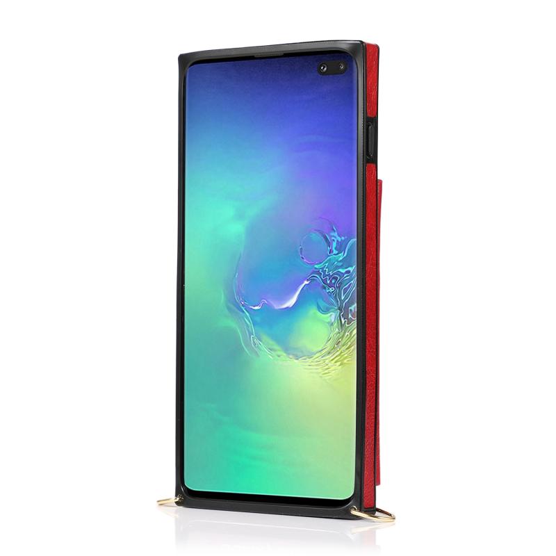 For Samsung Galaxy S10e Square Zipper Wallet Bag TPU+PU Back Cover Case with Holder & Card Slots & Wallet & Cross-body Strap(Red)