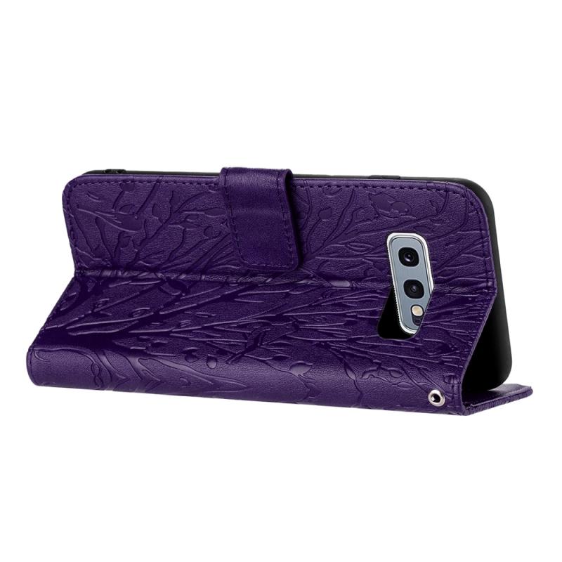 For Samsung Galaxy S10e Tree Birds Embossed Pattern Leather Phone Case(Purple)